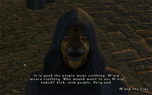 "Werewolves? Where? Wolves? Men that are wolves? Many wolves. Everywhere. Many men. That is enough for M'aiq."